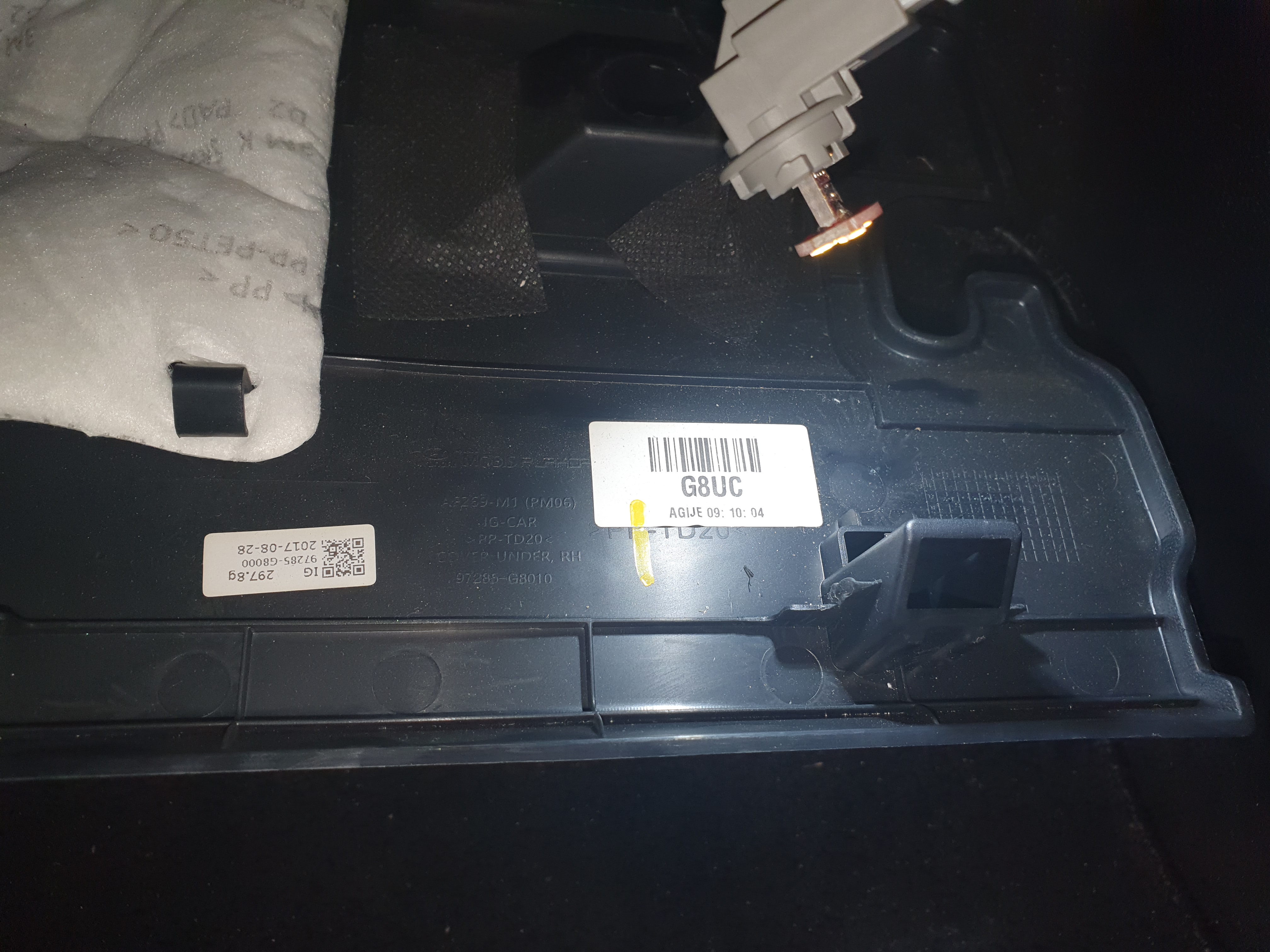헤라로 운전석 쪽 풋등 커버를 뗀다.