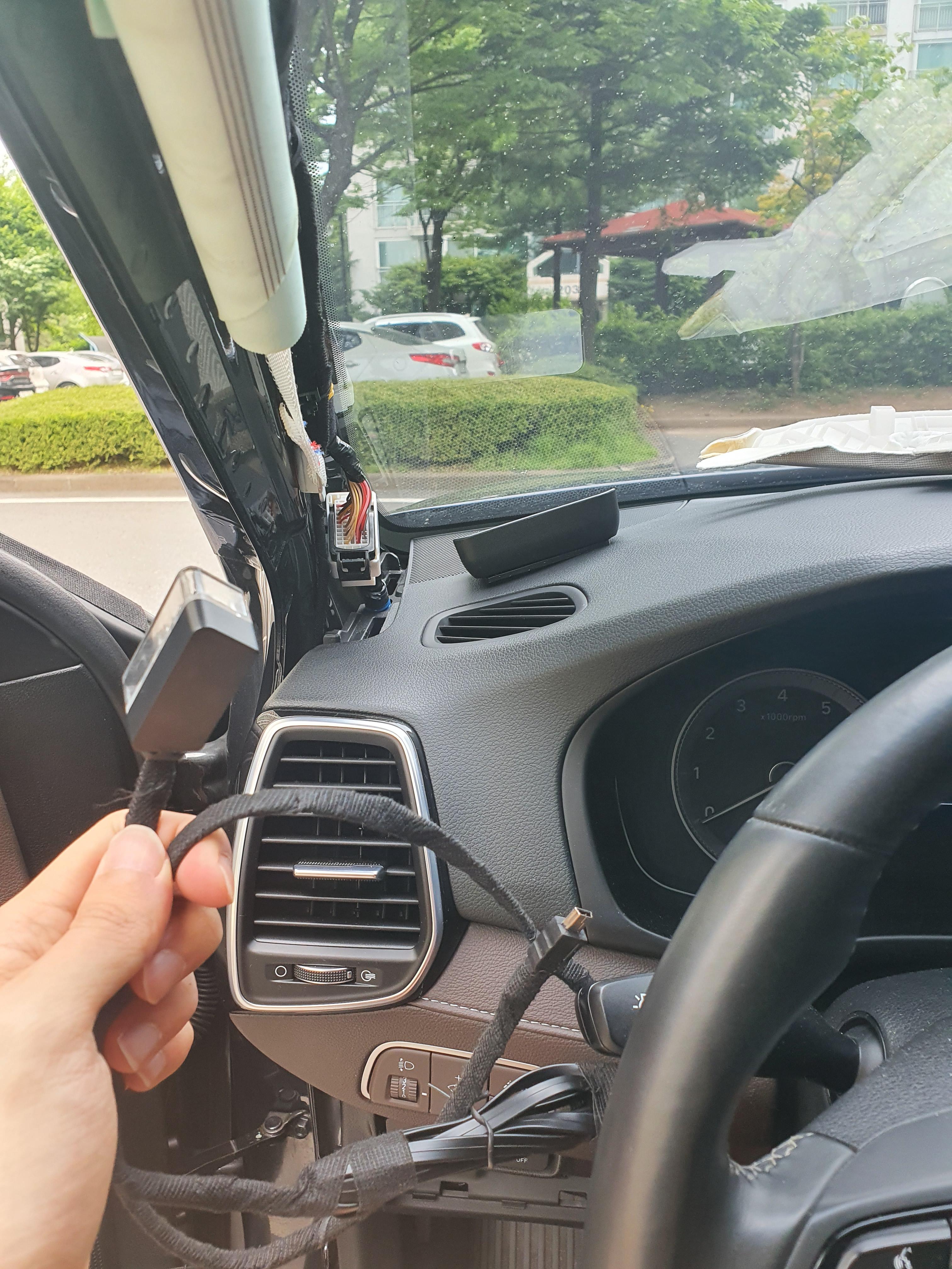 잡음방지를 위해 OBD 선에 싸구려 부직포테이프 돌돌 말아서, 창 앞쪽 틀 - A필러 - 사이드 - OBD 쪽으로 선을 넣어주면 아주 깔끔하게 매립된다.