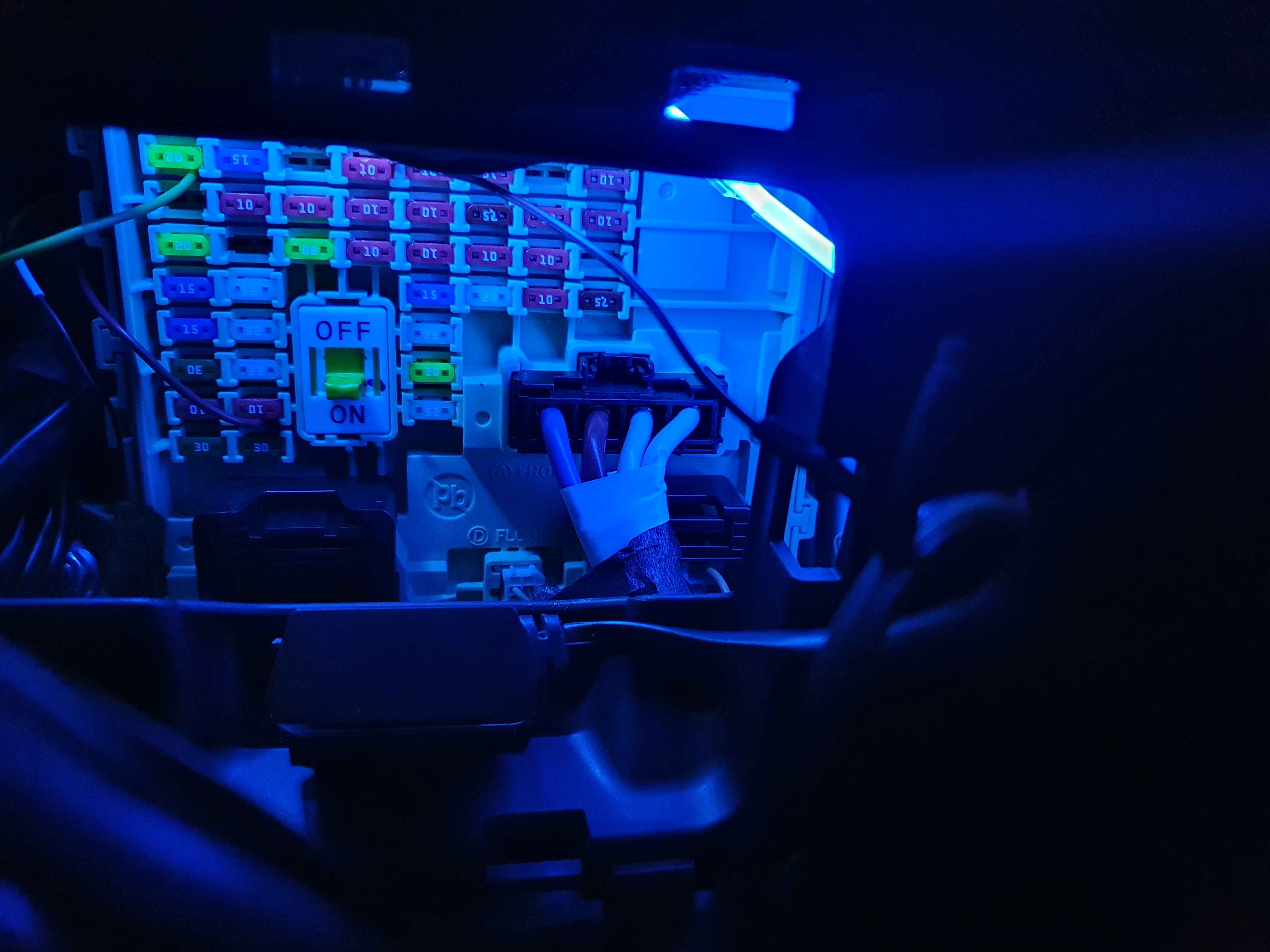 확인을 위해, OBD 단자만 꽃아봤다. HUD가 켜지지 않는 걸 봐서 성공이다.