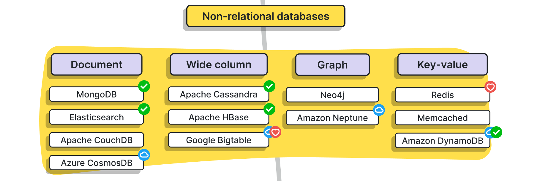 - 대용량 데이터를 저장하고 검색하긴 위한 플랫폼으로, 근래 큰 규모의 데이터 저장 시대가 도래하면서 굉장히 분류가 다양하고 종류 또한 많다 (여기 없는 것들도 수두룩하다)