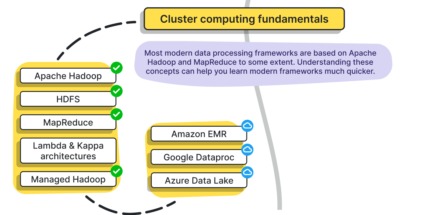 - 이 개념들을 보다보면 자연스럽게 밑에서 배워야 하는 개념들인 YARN, Spark 등에 도달하게 된다...