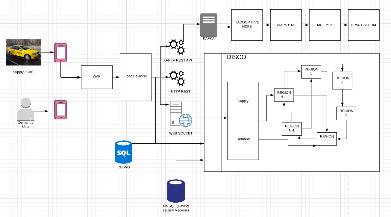 Uber 아키텍처를 가져왔는데, Uber 아키텍처에서는 방화벽(WAF) 뒤에 로드밸런서를 두어