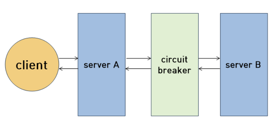 Circuit breaker이 들어간 최종적인 아키텍처는 아래와 같이 된다. Server A와 B 사이에서 지속적으로 상태를 체크하고, 문제 발생시 traffic을 차단하게 된다.
