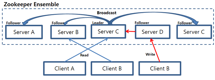 크게 Server과 Client로 구성되어 있는데, Server 경우 4~5개 이상의 cluster로 구성하기를 권장, Client는 health check / server query 전송 등의 역할을 수행하게 된다.