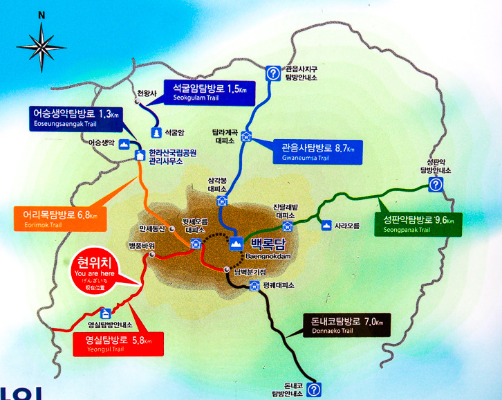 등산로가 없길래, 찾아보니 지정된 탐방로가 5군데 있더라. 그 중에서도 정상을 갈 수 있는 곳은 성판악과 관음사 두 곳으로 한정되어 있고, 입산 가능 시간도 대부분 12시 안으로 지정되어 있어 부지런히 움직여야 했다.