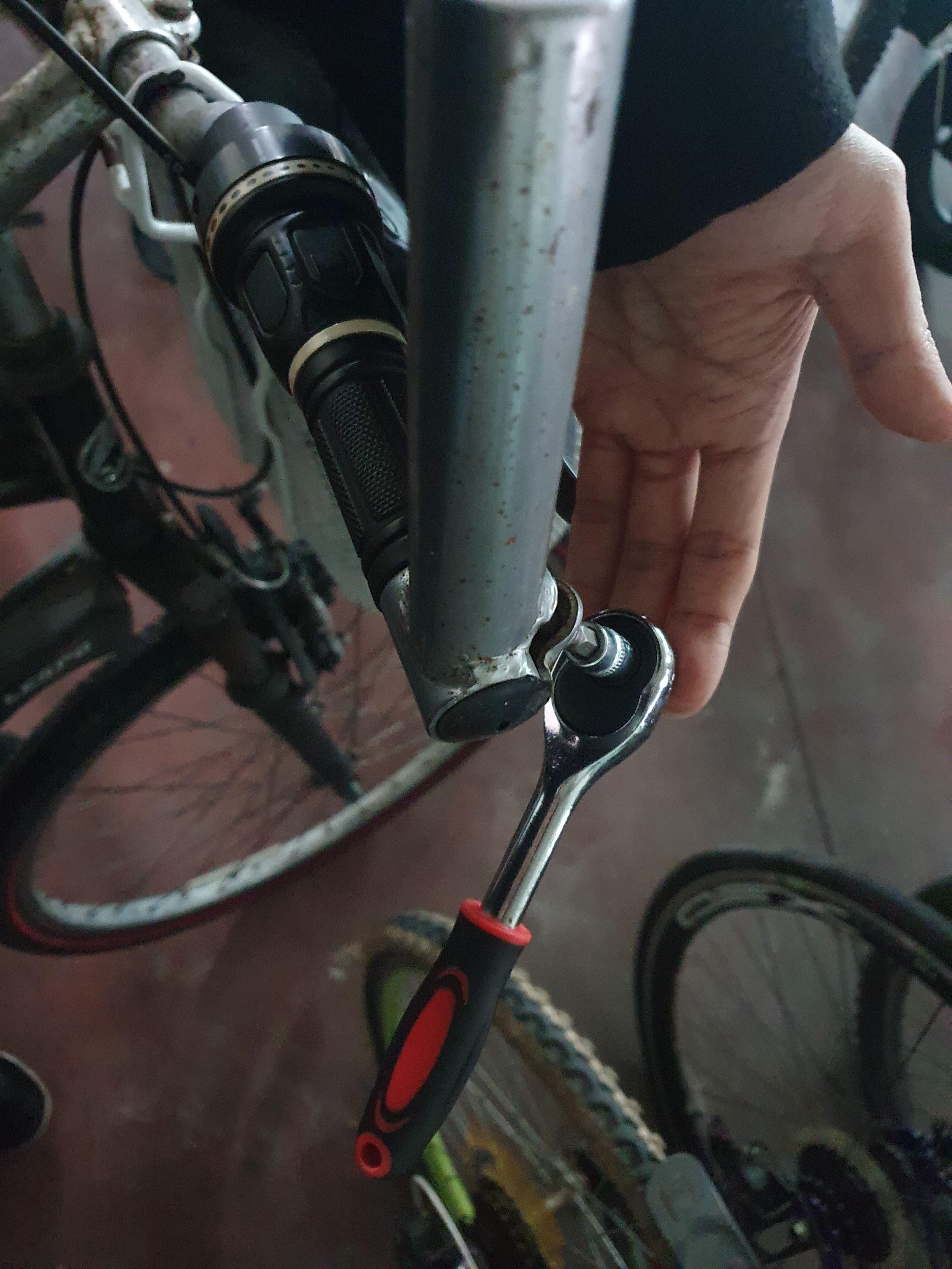 나 같은 경우는 왼쪽 시프터(= 앞 변속기) 먼저 뺐다. 와이어를 고정하고 있는 볼트를 복스알로 살짝 풀어주면 된다. (다 풀 필요 없음)