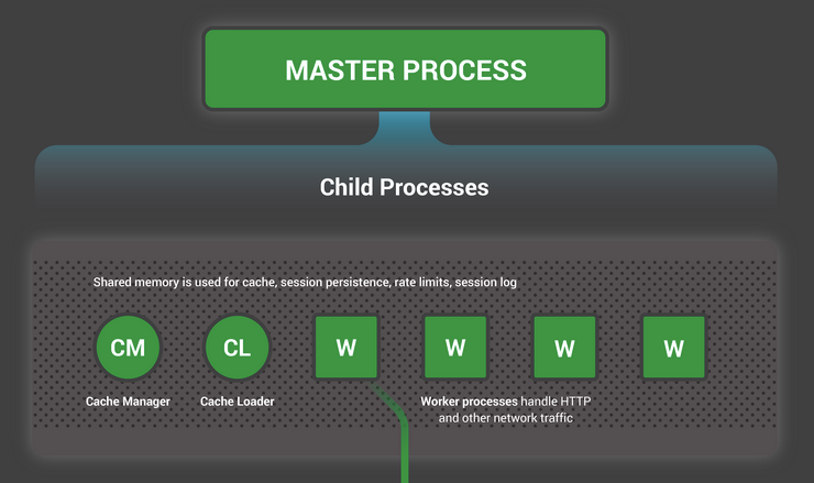 워커 프로세스 안을 조금 살펴보면, 흔한 웹 서버의 구조를 보여주고 있습니다. TCP 트래픽이 오면, 간단한 상태 머신을 태워서(대충 코드 태운다는 말), 적당히 라우팅 하거나/콘텐츠를 회신하거나 등의 역할을 해주고 있습니다.
