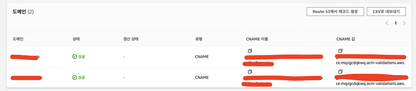 제대로 설정하면 10분? 20분? 이면 금방 처리가 완료된다. 심지어 Route53에 도메인이 있으면 자동으로 추가까지 해준다. 그리고… 결정적으로 ACM의 인증서(private pem)는 반출이 안 된다. AWS 내 서비스에서 자체 연결이 되서 사용할 수 있는 방식이다.