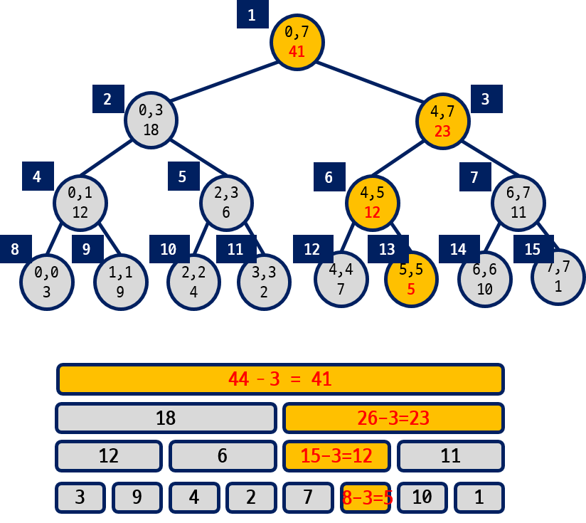 기존 문제에서는 sum 방식으로 구했지만, 이번에는 수정 명령이 들어가서, 이 경우 수정하는데 O(N) 이 소요되게 된다. 이렇게 되면 O(KN) 인 모든 부분합 구하는 방식과 차이가 없어진다…