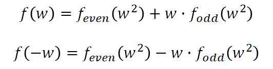 위의 머리 터지는 FFT에 비하면 간단한 편이긴 합니다. 일종의 수학적 꼼수긴 한데, 핵심은 a * b를 (a1 + b0) * (b1 + b0) 꼴로 만들었을 때 이를 네번이 아니라 세번의 곱셈으로만 계산할 수 있다는 데 있습니다.