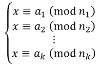유명한 정수론 중 하나입니다. 아주 간단히 설명하면, 서로소인 나머지(mod)들에 대한 연립방정식(연립합동식)은 해가 단 하나 존재한다는 것.