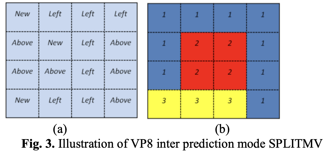 ์ฌ๊ธฐ์ ํคํ๋ ์๊ฐ์ ๋ณด๊ฐ(์์ธก)์ ์ํด์๋ โTM_PREDโ๋ผ๋ ๊ฒ์ ์ฌ์ฉํ๊ณ , ์ด๋ฏธ์ง ๋ด๋ถ์์์ ์์ธก์ ์ํด์๋ โSPLITMVโ๋ผ๋ ๋ฐฉ์์ ์ฌ์ฉํ๋ค๊ณ ํฉ๋๋ค. ์ด๋ฌํ ๋ ํผ๋ฐ์ค ํ๋ ์๋ค์ ์ด์ฉํ์ฌ ๋ณด๊ฐ ํ๋ ์๋ค์ ๋ง๋ค๊ฒ ๋์ฃ .