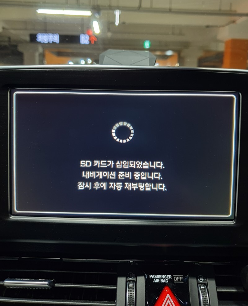 SD카드를 넣고 시동을 켰더니 인식하지 못해서, 다시 뺐다가 넣으니까 바로 인식하더라. 이후로는 아무 문제 없이 업데이트를 진행할 수 있었다.