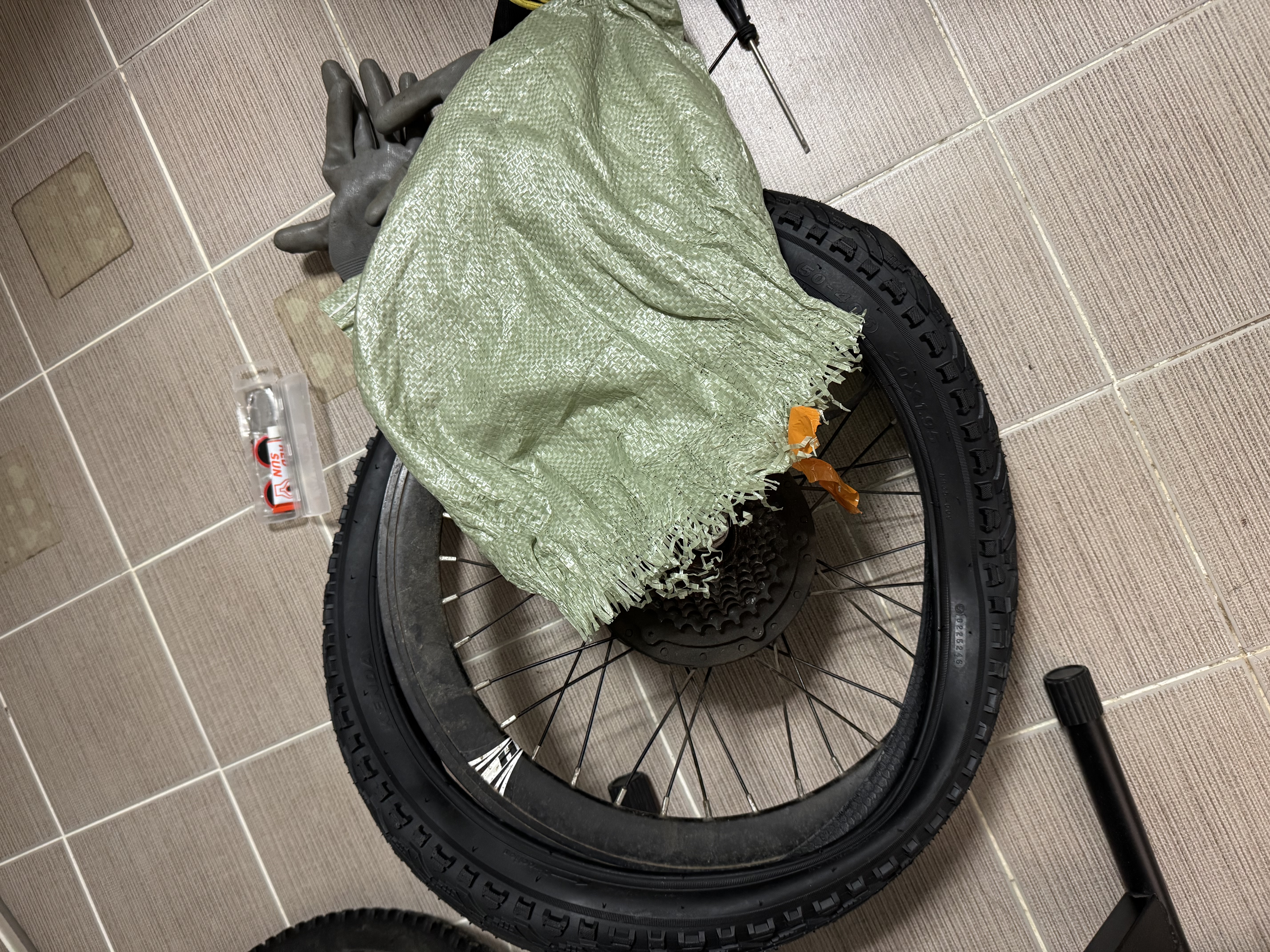 스포크 조일때 쓴다고 하는데 내가 봤을땐 굳이 필요까진 하지 않아서 굵은 줄은 안 쳤다. 소형 펜치나 플라이어 정도로 대체되긴 함. 그래도 몇푼 안하니 살때 같이 사는것을 추천. - 기타 자전거 해체를 위한 공용 툴: 뒷바퀴 해체를 위한 바이스플라이어 혹은 크고 긴 렌치, 케이블 타이 및 니퍼, 자전거 타이어 레버, 공기 주입기 혹은 컴프레셔, 청결한 작업을 위한 장갑 등