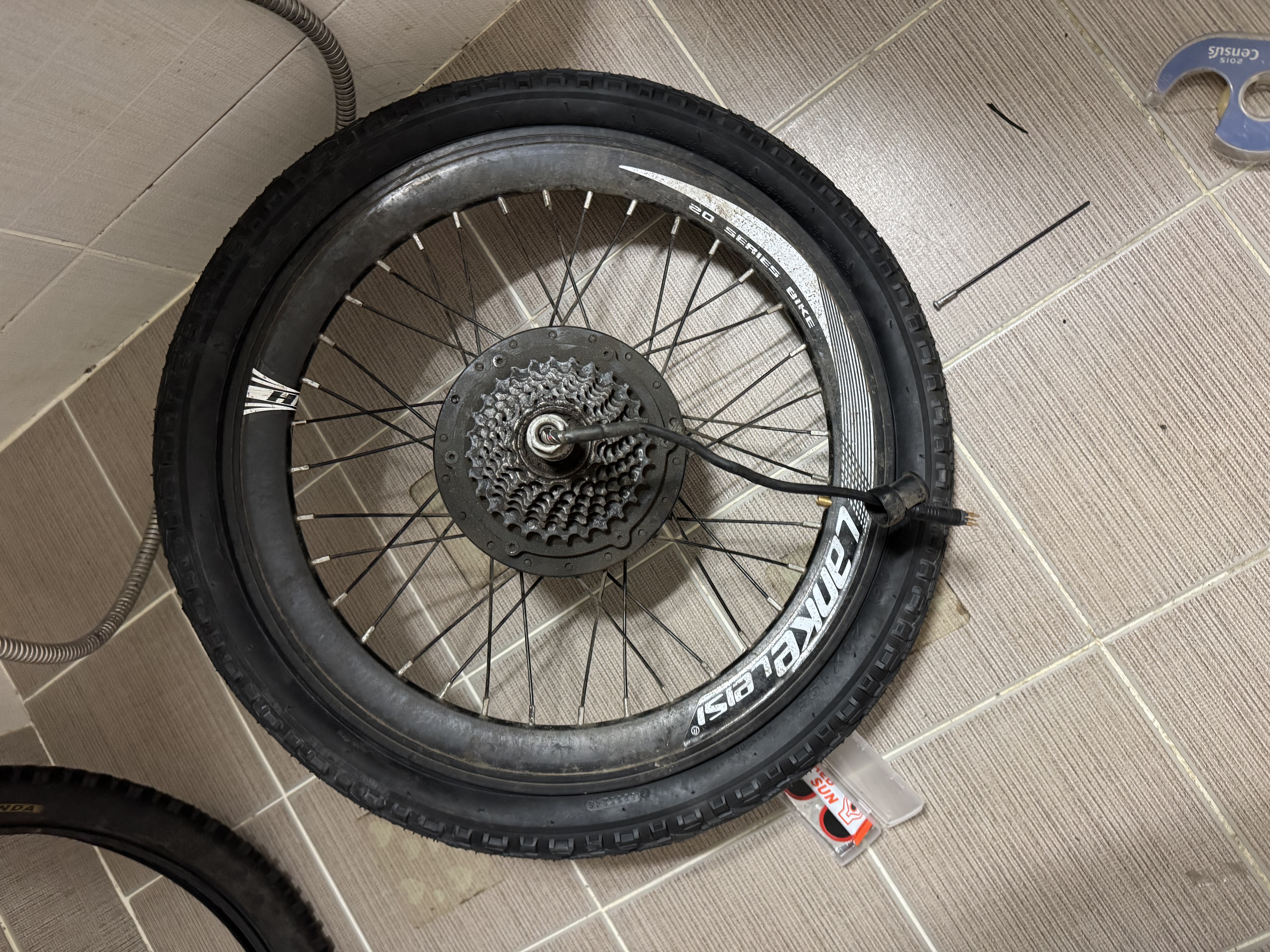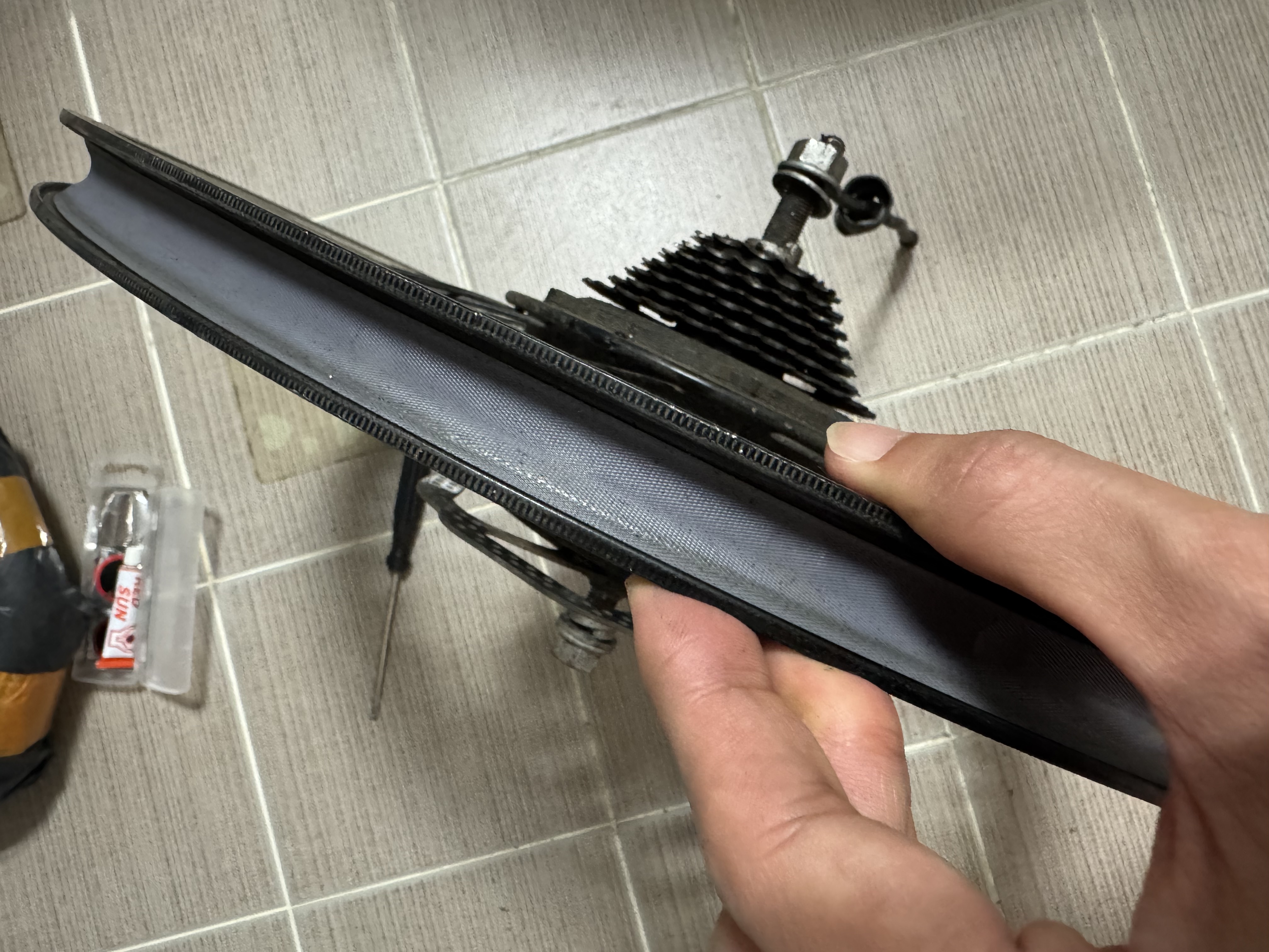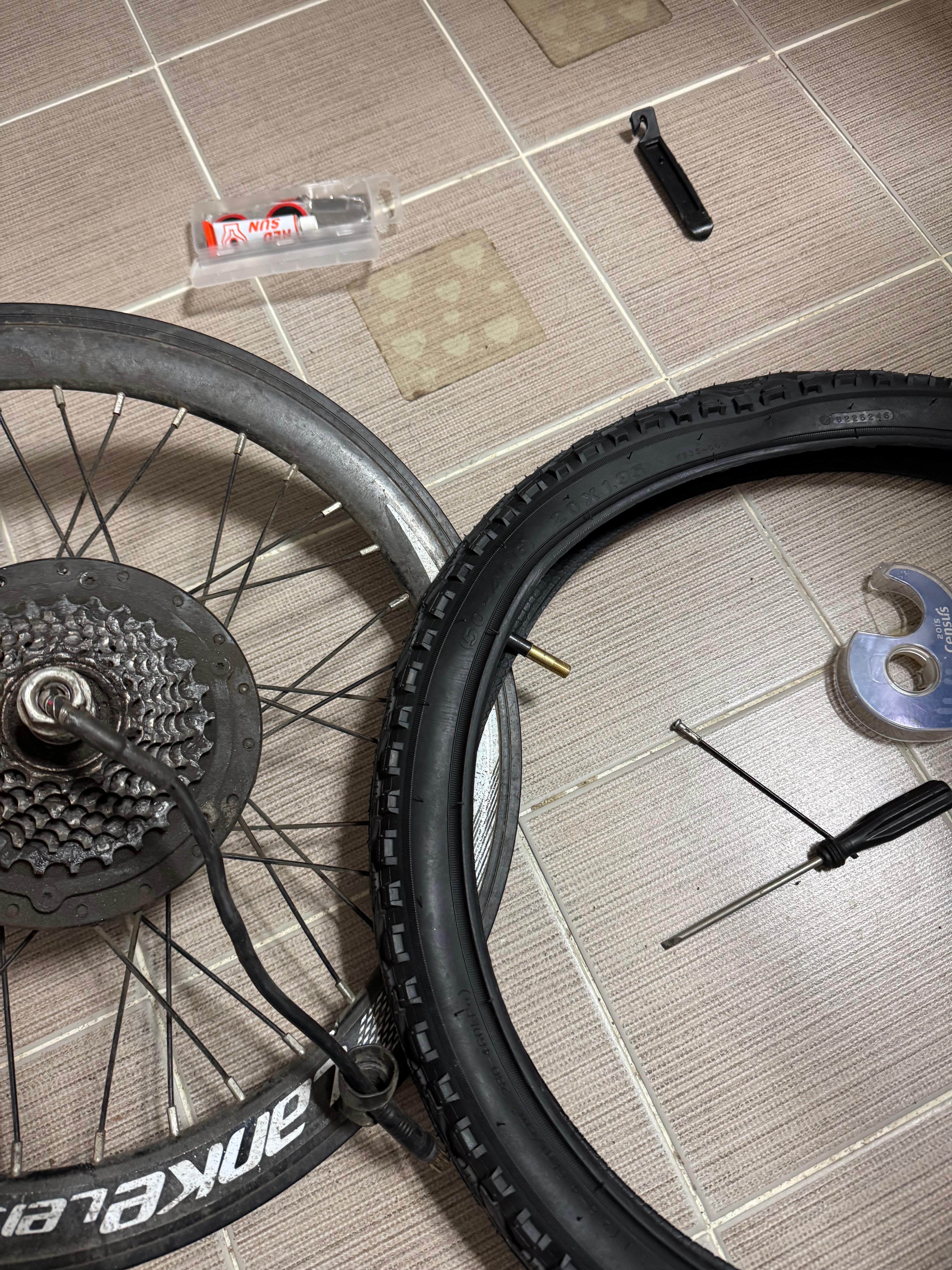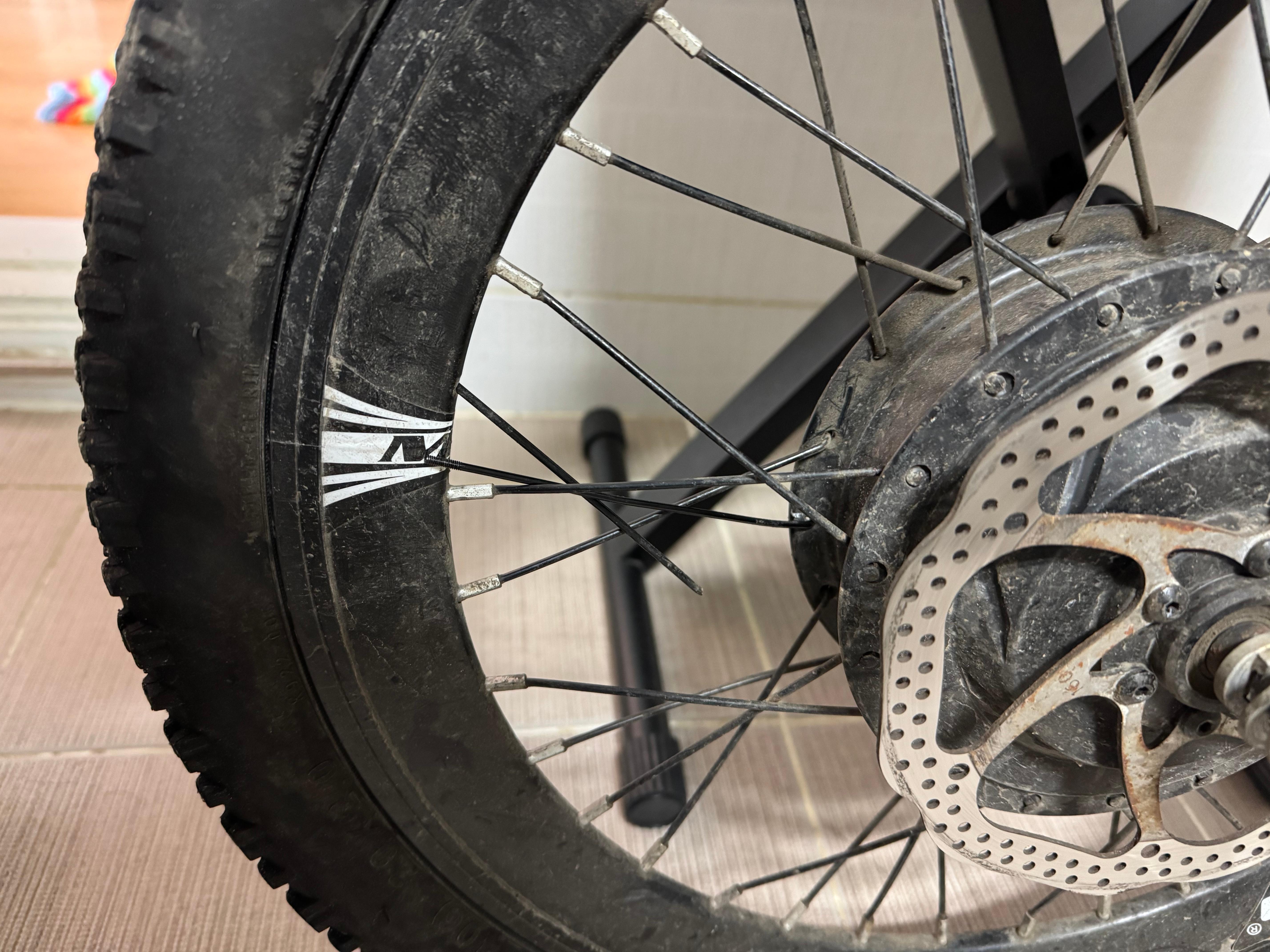 하지만 그런 자전거라도 부품들의 수명이 있기 마련이다. 그 첫 번째는 타이어다. 기본 타이어가 물살인건지, 아니면 컨트롤러 교체 전 풀가속이 되던 문제로 인해서인지, 앞바퀴와 달리 뒷바퀴의 트레드가 다 닳아서 바닥을 드러내고 있었다.