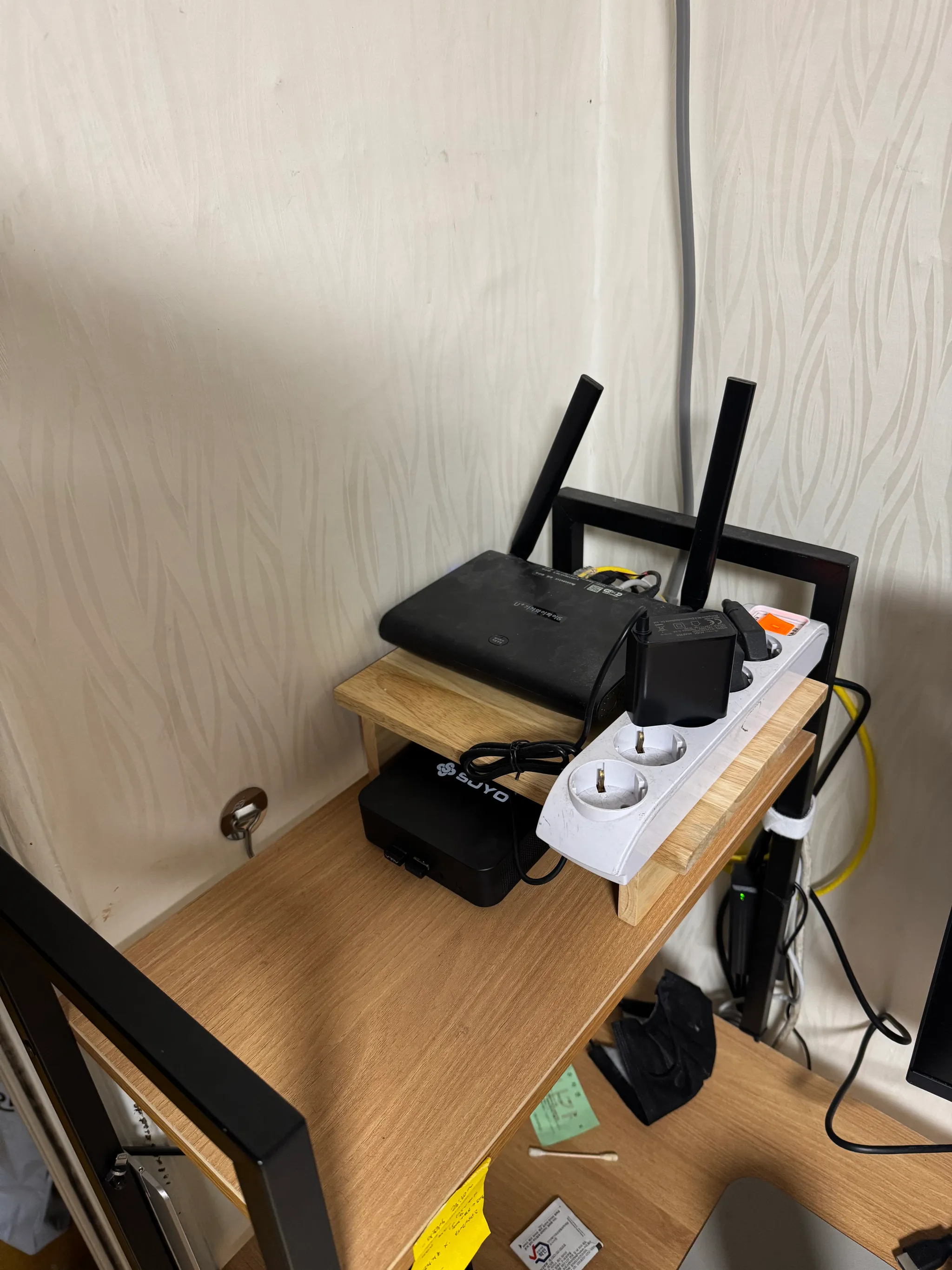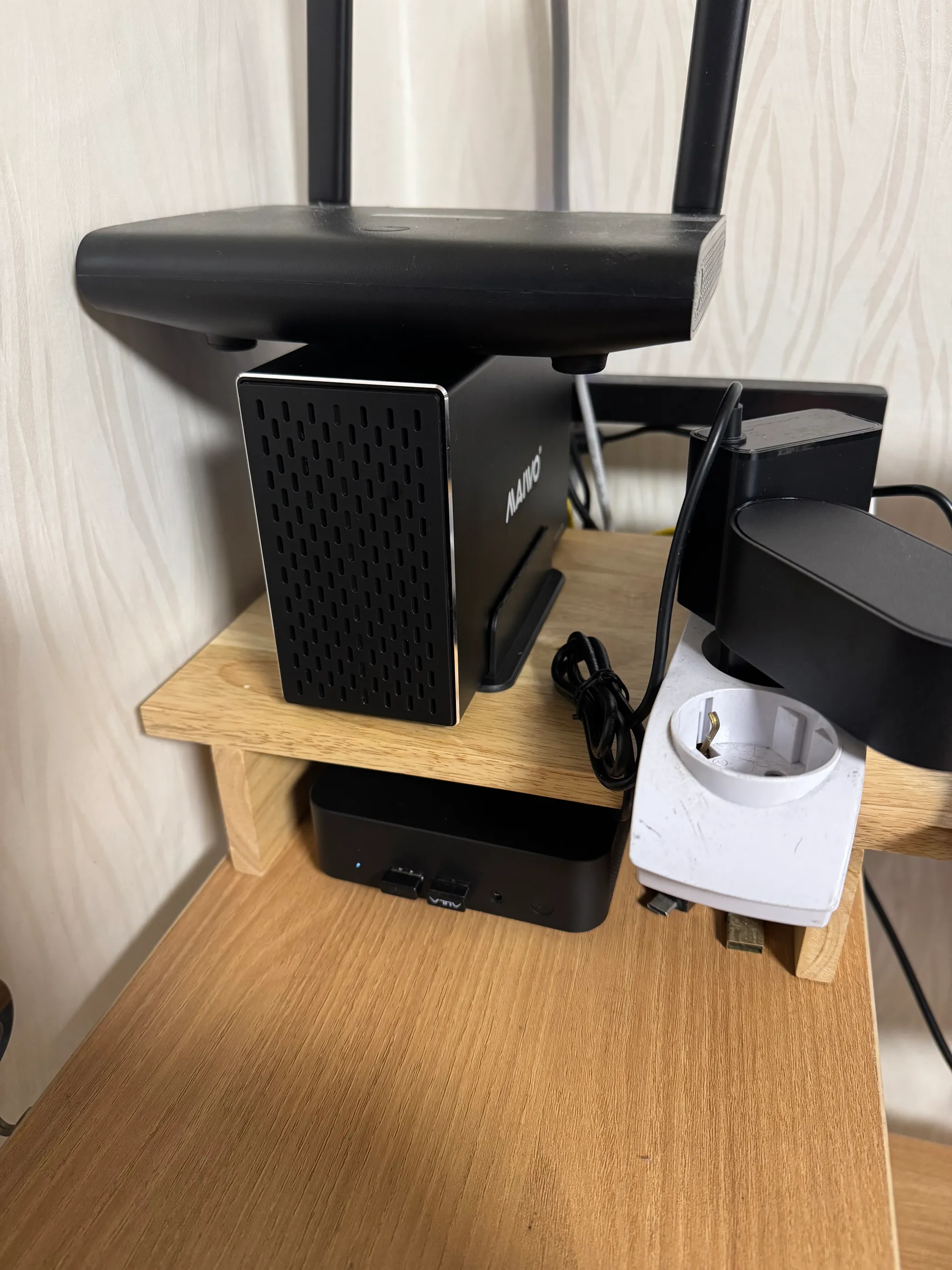 - 또한 미니PC를 기존 공유기 있던 자리에 놓을 예정이었는데, 공유기의 발열이 꽤 심했기에 분리할 공간이 필요했다. 실제로 공유기 바로 위에 미니PC를 얹었더니 공유기 발열로 인해 PC의 팬이 엄청나게 돈다.