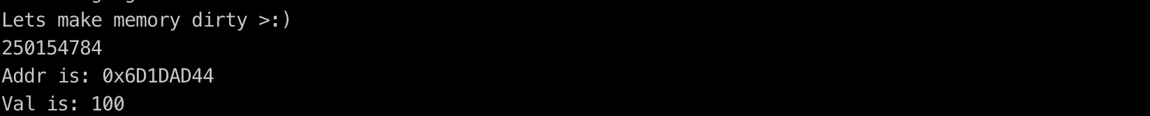 printf("Addr is: 0x%X\n", c); // expected to print valid memory addr