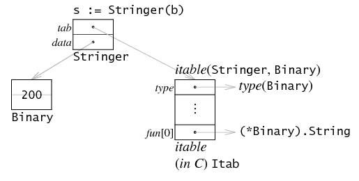 Go는 이 둘의 중간쯤입니다. 메소드 테이블도 가지고 있고, 런타임에서 캐시도 합니다.