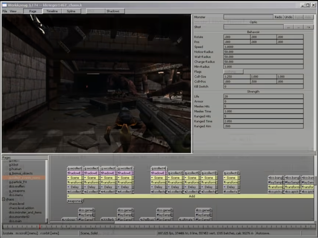 내부 툴 Werkkzeug로 Procedural texture generation 스크립팅하는 모습