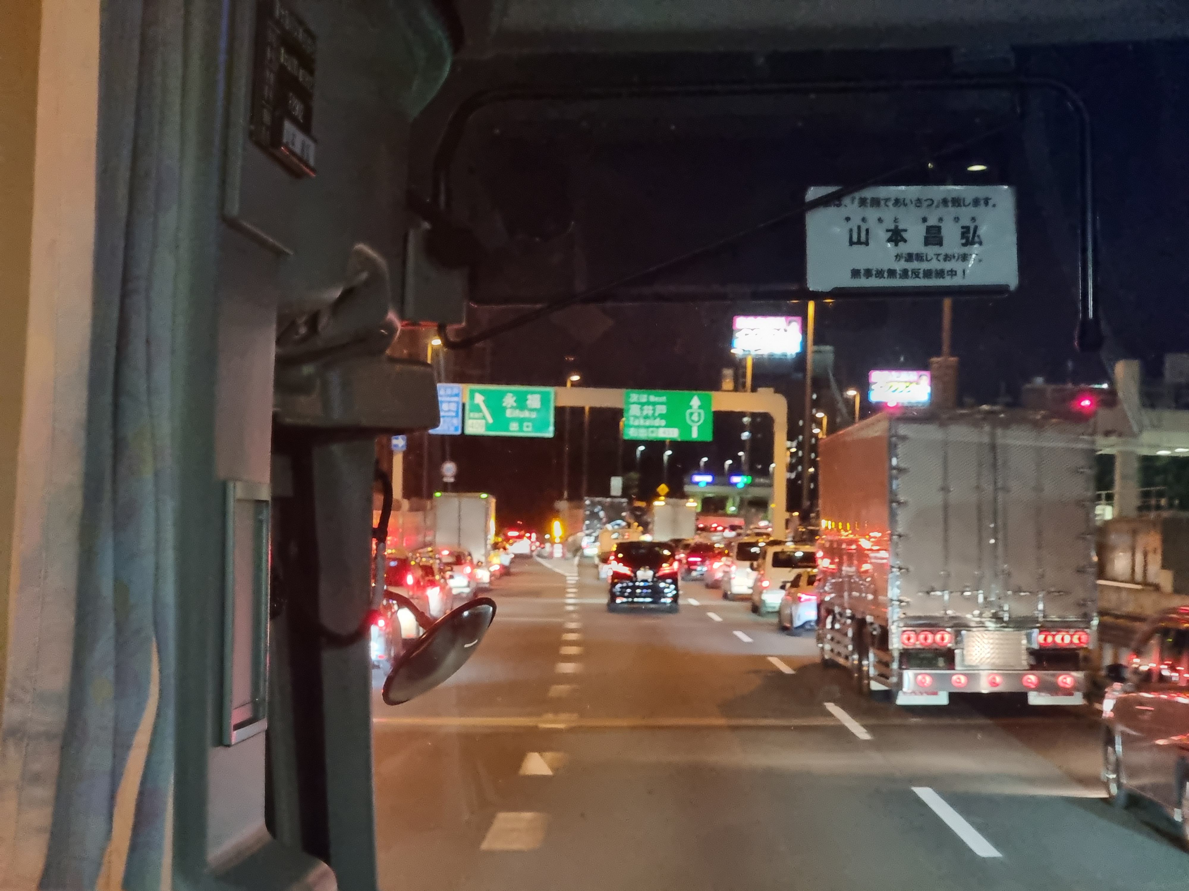 일본 버스는 화장실이 있다. 안심이 된다. 정작 나는 쓸 일이 없었다. 그리고 음식 먹는게 허용되는 건지, 건너편 여자 둘이서 도시락 먹고 맥주캔 까고 난리가 났다. 그리고 길이 더럽게 막히던데, 왜 그런가 했더니 츄오 고속도로 본선이 편도 2차선인데 도로보강한답시고 차로 한개를 통째로 막았다 (!!).