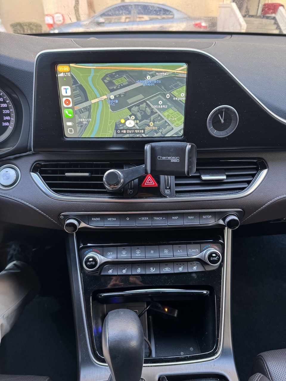 차에 설치하면 이렇다. 아래쪽에 아주 조그마한 무선 카플레이 동글을 확인할 수 있다.